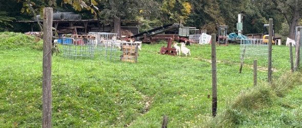 Ca. neun Kinder konnten sich um den Stamm stellen. Danach wanderte die Klasse weiter an den Alpakas vorbei Richtung Kirche. Hier begegneten uns neben freilaufenden Hühnern auch noch Ziegen. Diese waren aber eingezäunt. Danach ging es weiter zu dem Spielplatz am Friedhof und dort ließ man den Wandertag ausklingen.